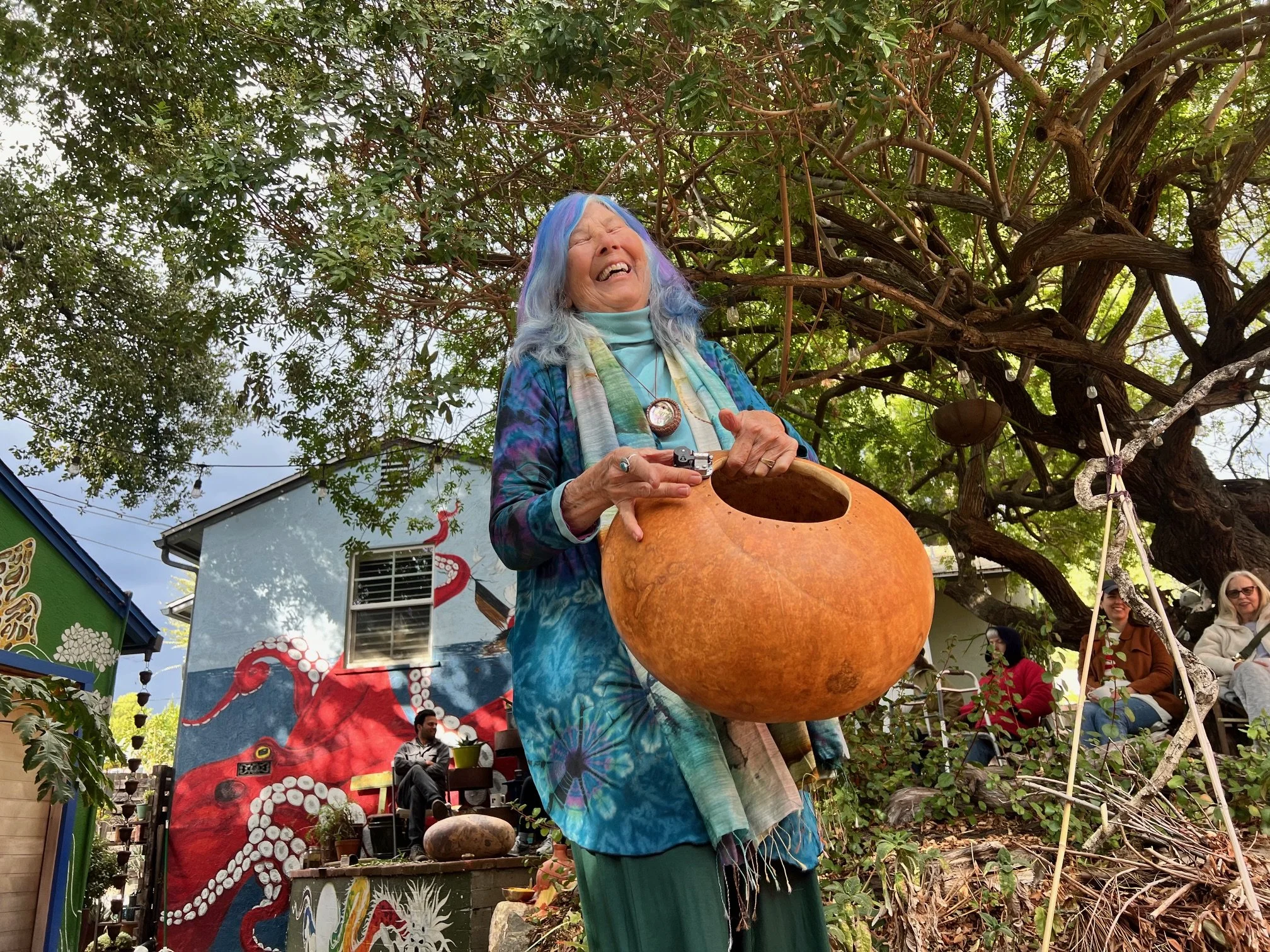 Leigh Adams is an award-winning educator, artist, and regenerative designer whose work brings together science, story, and spirit. Known for her warm presence and intuitive teaching style, Leigh has spent more than five decades guiding communities toward deeper connection with nature—through soil, through art, and through acts of quiet repair.